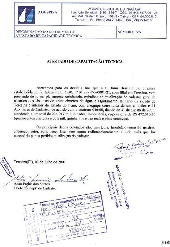 ATESTADO DE CAPACIDADE TÉCNICA - CADASTRO - AGESPISA (Teresina-PI)